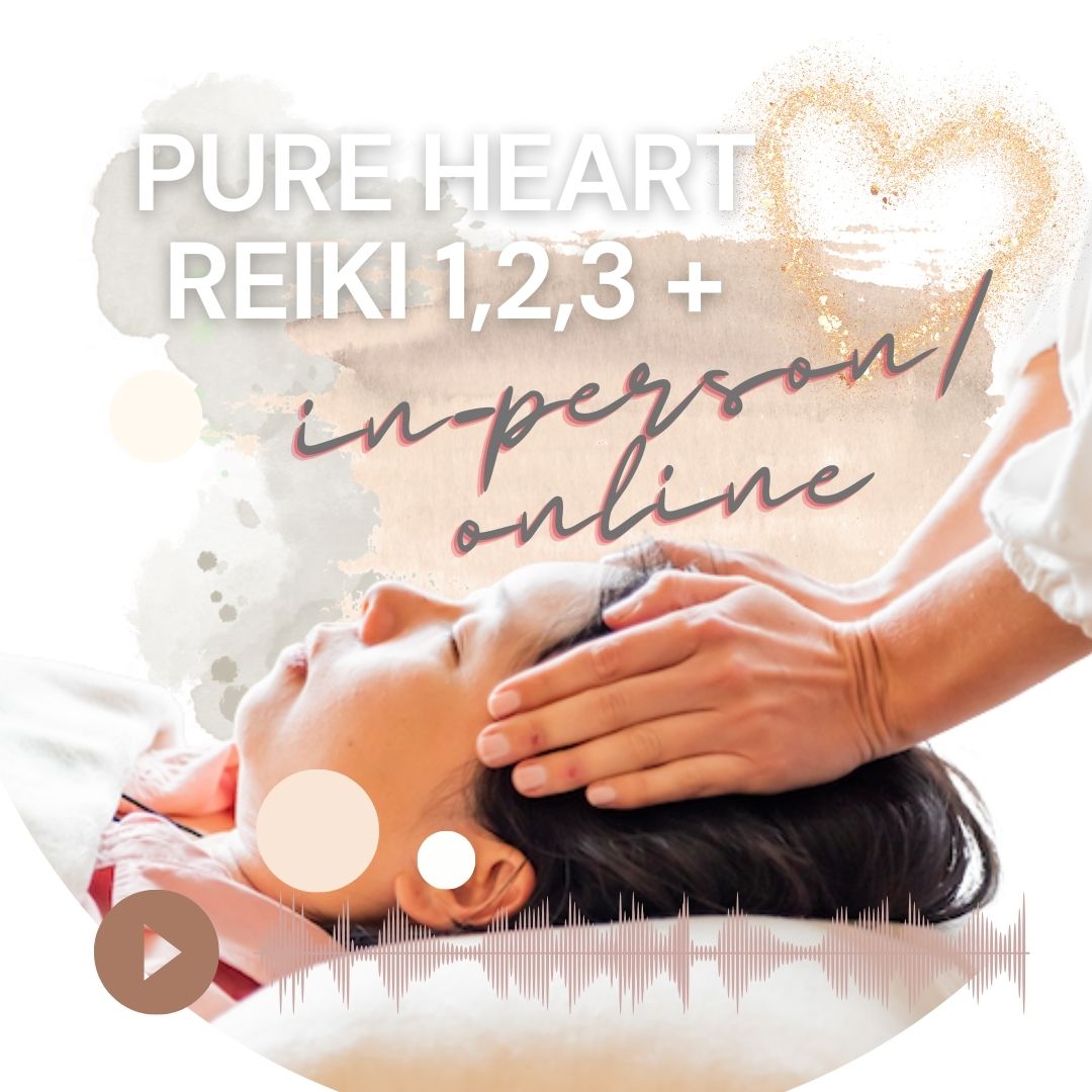 Pure Heart Reiki offers Usui lineage training (Levels 1, 2 and 3/Master, with Master Teacher by request) woven with emotional awareness and trauma‑aware practice.